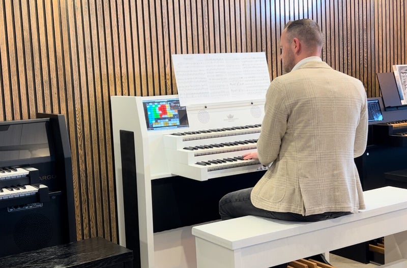 Hoofdwerkorgels mocht Hendrik van Veen ontvangen in de showroom. Het model uniek 30 werd daarbij bespeeld.