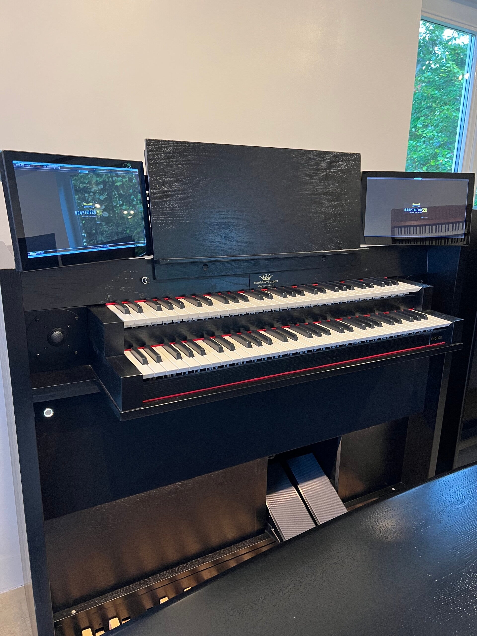 Met de twee 14 inch touchscreens in de lessenaar zijn de registers goed leesbaar en te bedienen. De schermen komen schuin uit de lessenaar voor een nog beter handbereik, ook zijn de schermen handig weg te schuiven achter de lessenaar.