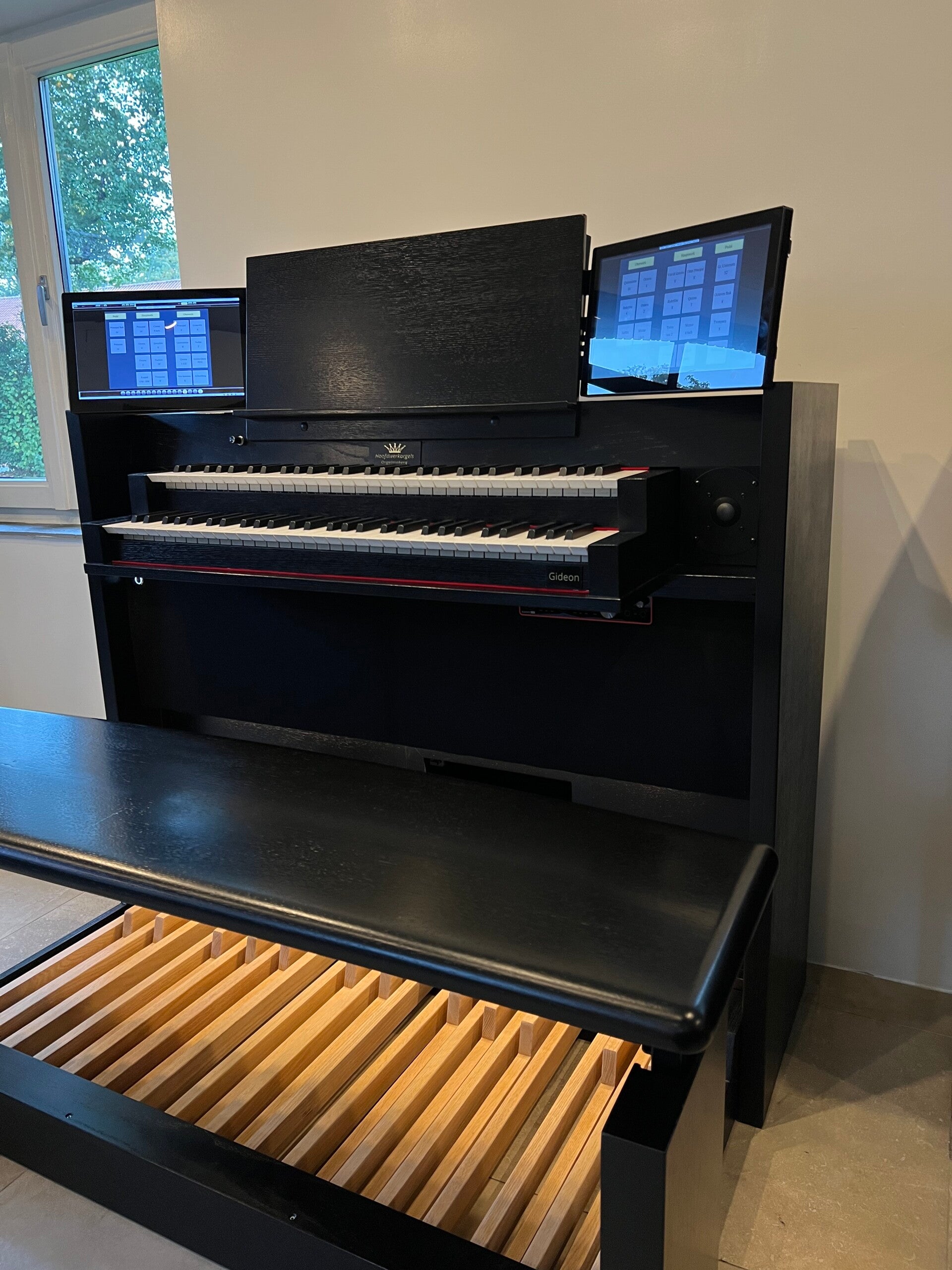 Hoofdwerkorgels Gideon doet zijn naam eer aan, het is een compact model wat in vrijwel iedere huiskamer past.