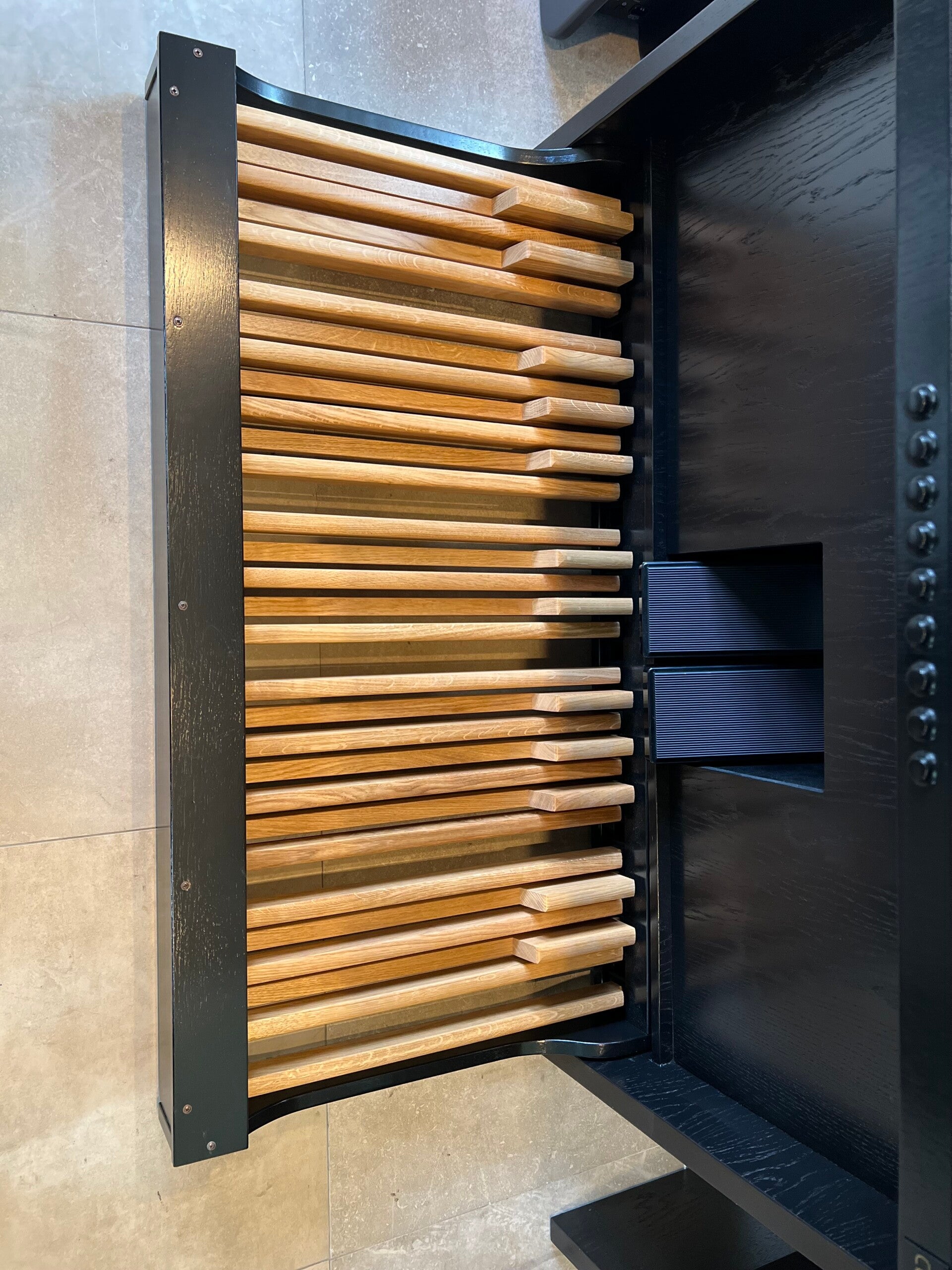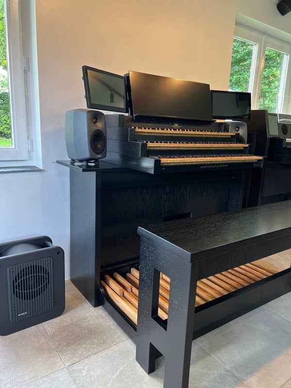 Hoofdwerkorgels Console met Ebbenhouten klavieren in zwart.